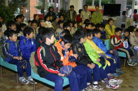 みんな行儀良く真剣に聞いていました。「困っている人などを助けるために、体を鍛えて丈夫にしてください。」