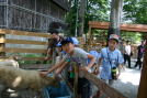 本年度「最後の締!」活動となりました。 大収穫祭&お別れセレモニーです。 朝方まで降っていた雨を吹き飛ばしビーバー晴れとなり、ビーバー菜園では、待ちに待った!とうきび、枝豆、じゃがいも、たくさん!実ってました(^-^) 毎日朝早くに畑に来てお世話してくれた団委員長のお陰です!ありがとございます! とうきびは、なんと!130本収穫です(^^)/スカウト達は、自分達が種をまいた名札の所へ行き、取り方の説明を聞くと手慣れた様子でとうきびを取ります。枝豆も実がふっくらと食べ頃です。 汗をかいた後の休憩では、団委員長が、畑から取立のスイカを、切って食べさせてくれました!みんな「甘〜い!」と汗と土まみれで食べてました!